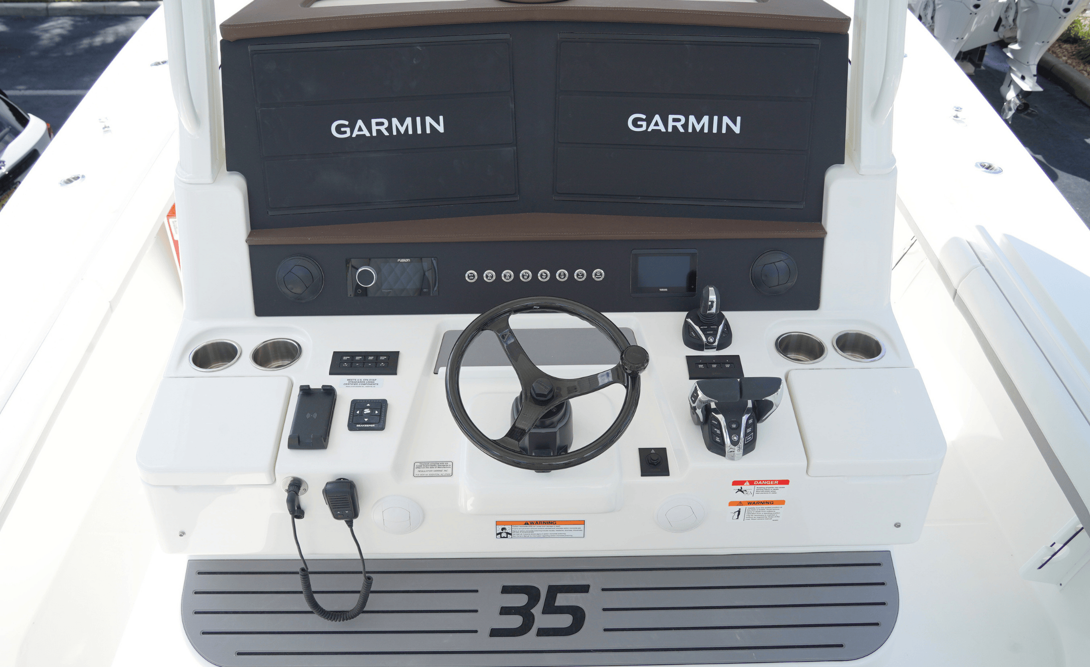 Powered by triple Yamaha outboards (commonly triple Yamaha F350 HP engines), the Regulator 35 brings serious horsepower and efficiency to every trip.