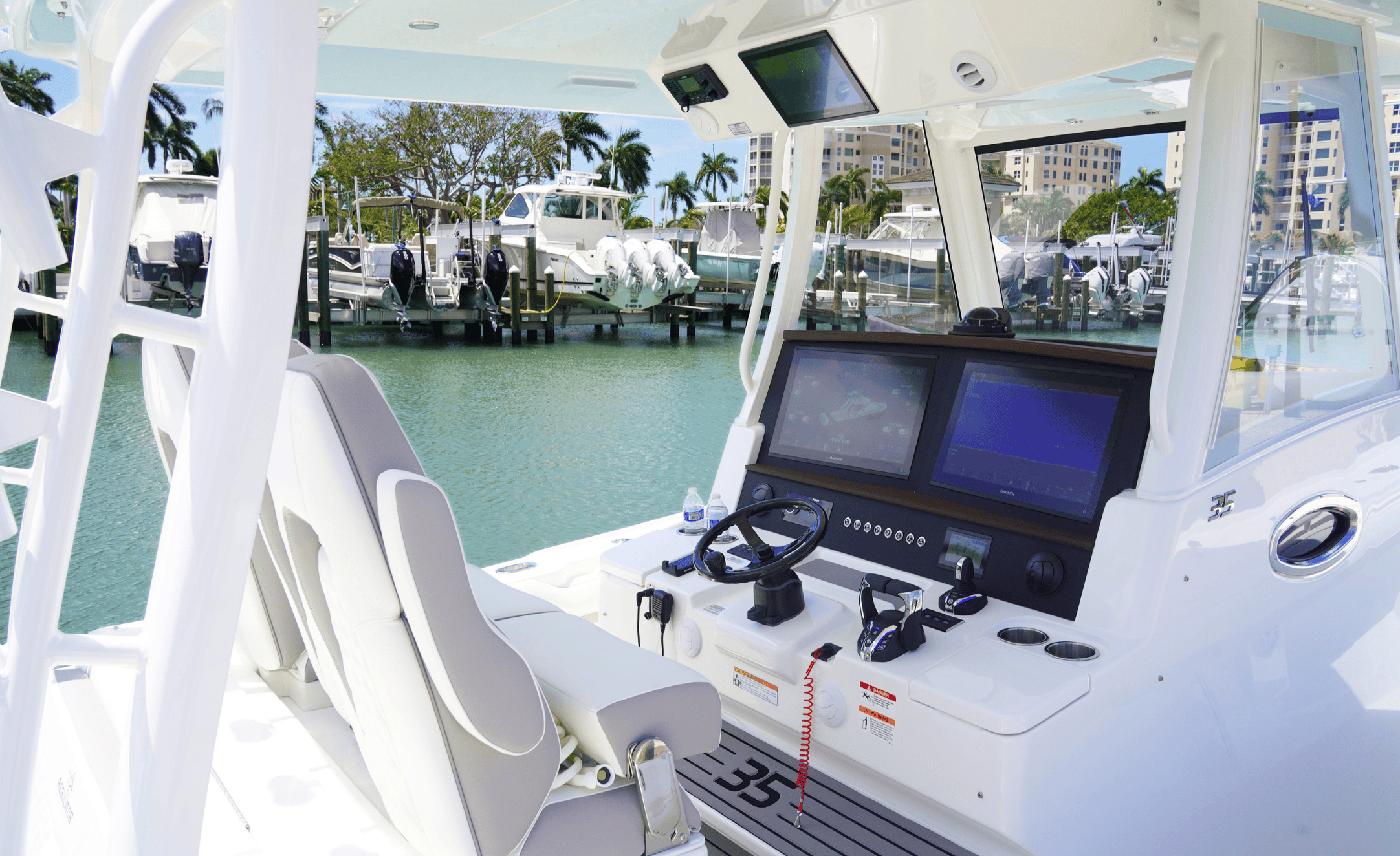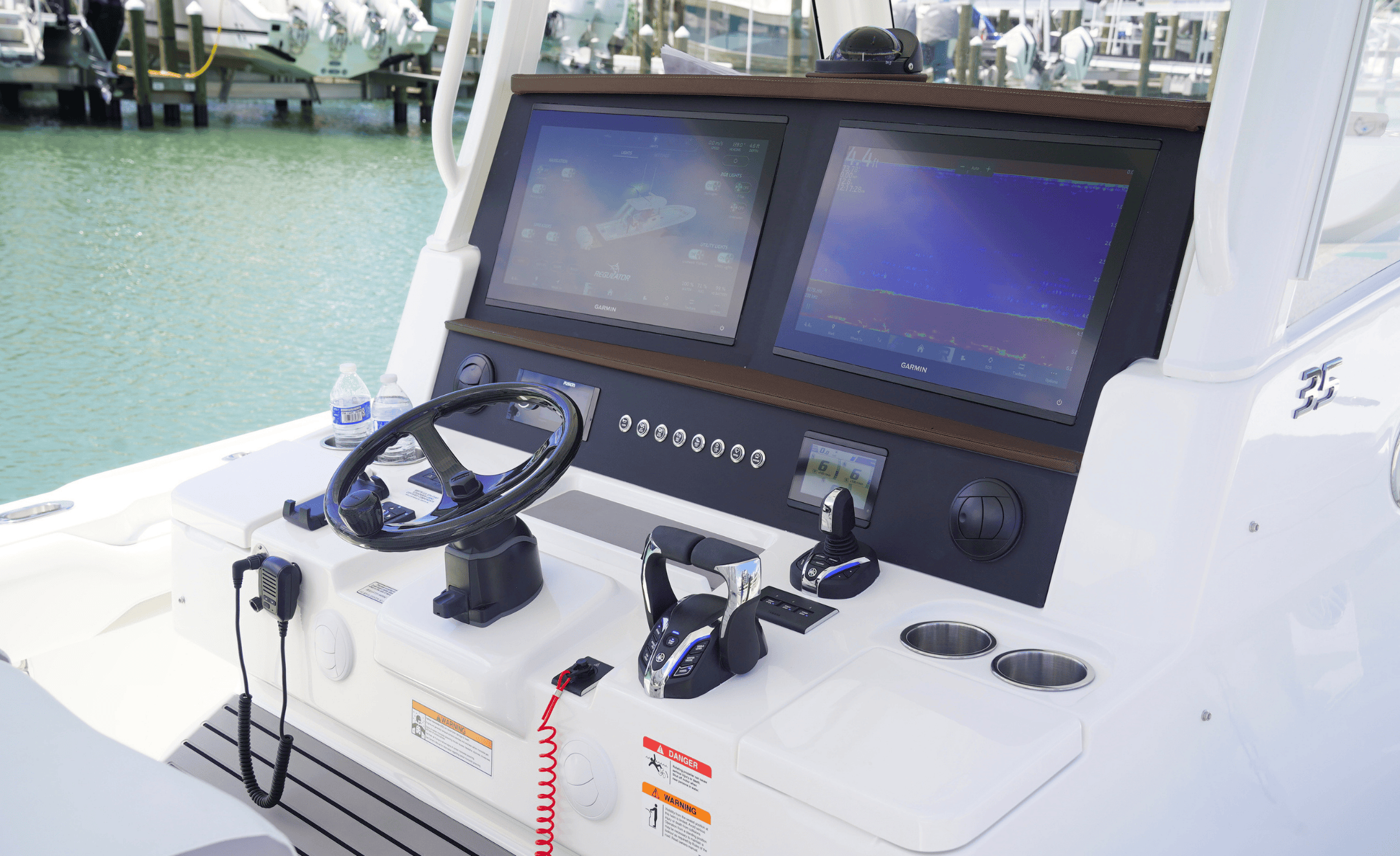 • Comfortable helm with high-tech Garmin multifunction displays