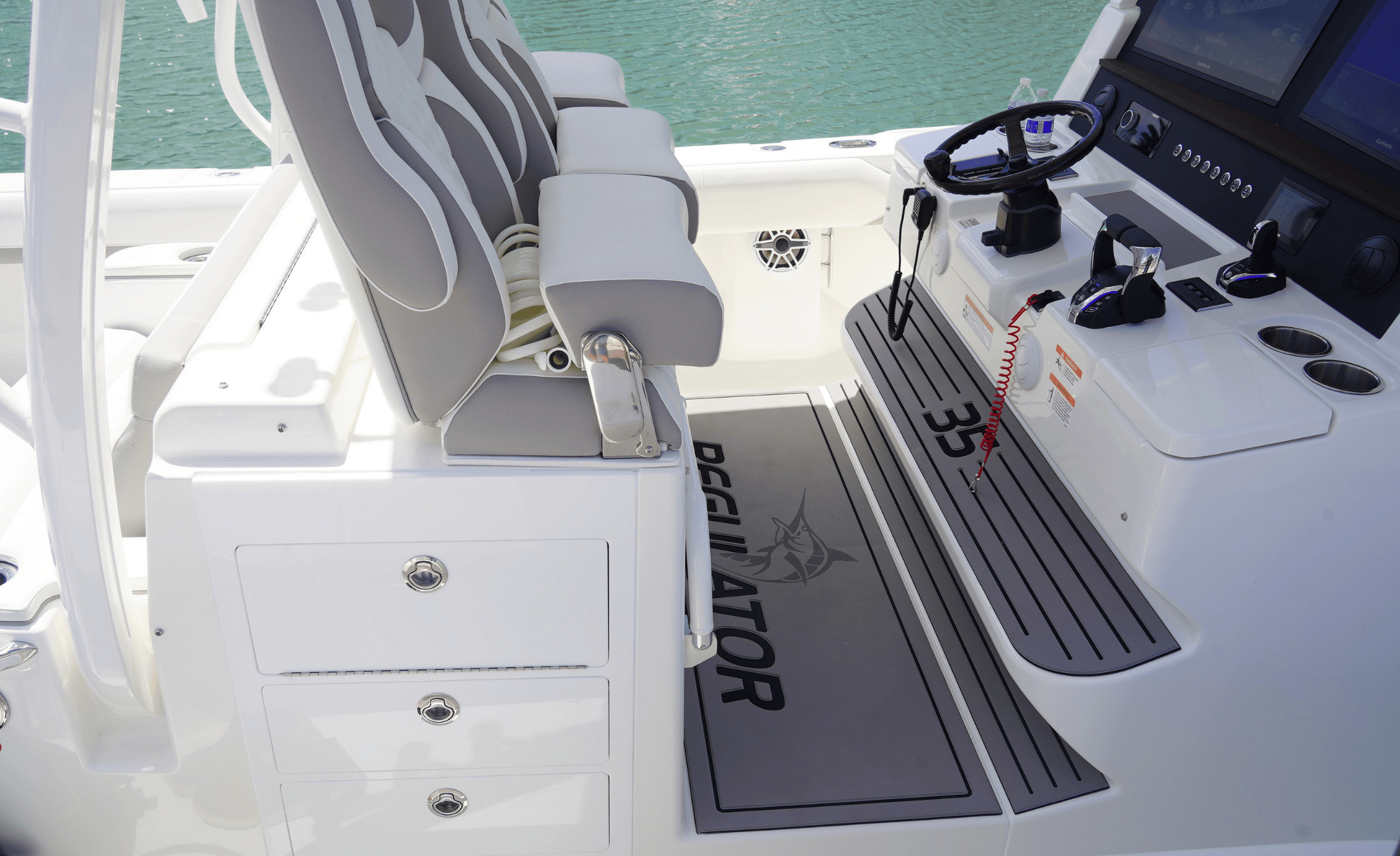 Designed for the serious fisherman, the Regulator 35 boasts generous fishability and smart storage:
